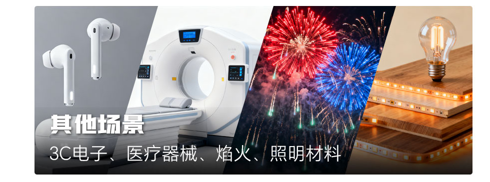 其他場(chǎng)景:3C電子、醫(yī)療器械、焰火、照明材料